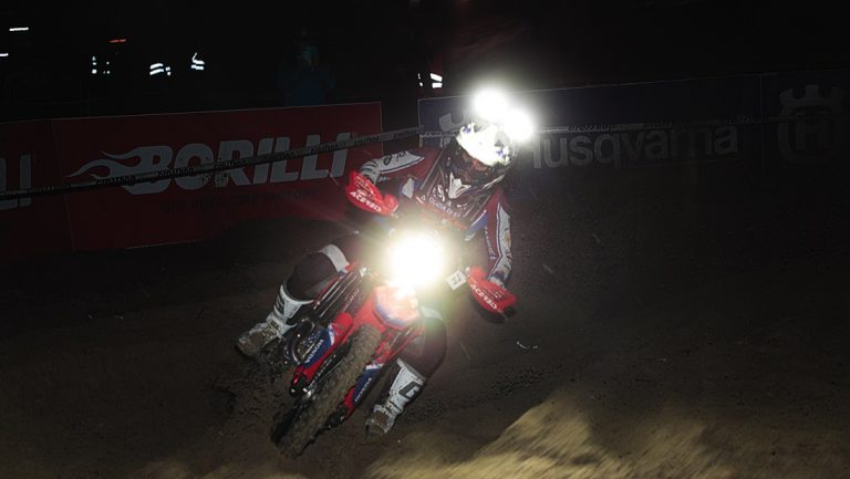 I piloti degli Assoluti d’Italia hanno chiuso la splendida serata di apertura sotto una incessante acqua, dopo aver visto in azione gli atleti di Coppa Italia e Coppa FMI. Oltre alla pioggia, un altro elemento da tenere in considerazione è stato il fattore luce, perché gli ultimi passaggi si sono svolti per i big nel buio profondo e con la sola autonoma illuminazione, rendendo il tutto ancor più difficile.
