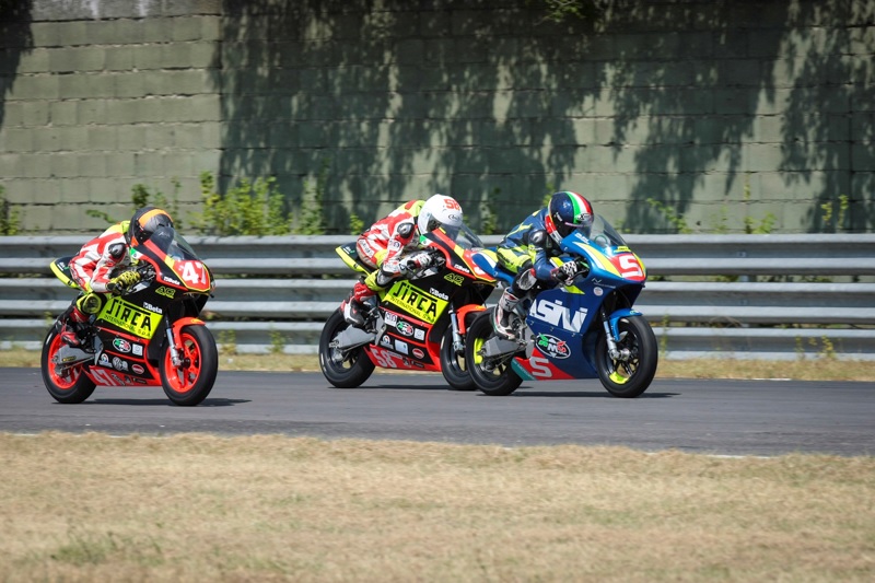Confermano appieno le aspettative della vigilia, il quarto appuntamento stagionale del CIV Junior non ha tradito le attese. Su un tracciato interpretato al meglio dai giovani interpreti delle ‘ruote alte’, le gare in programma hanno offerto emozioni ed avvincenti bagarre risoltesi prevalentemente soltanto all’esposizione della bandiera a scacchi. Questo il caso delle due gare del Campionato Italiano MiniGP 50cc con alcuni elementi inconfutabili ad attestare la straordinaria competitività della serie: 9 piloti racchiusi in 1″5 nell’ordine d’arrivo di una Gara 1 stilata in base alla classifica del quinto giro (l’ultimo completo prima dell’esposizione della bandiera rossa), la top-4 in soltanto 646 millesimi nella seconda corsa in programma. Partendo da Gara 1, un esordiente come Alex Venturini (RMU Pasini Racing Team) si è assicurato la prima affermazione in carriera nell’Italiano MiniGP 50cc riuscendo a spuntarla sul proprio compagno di squadra Demis Mihaila, a sua volta “rookie” della categoria dopo trascorsi di successo tra le Minimoto. Una splendida affermazione per Venturini che ha preceduto, oltre al già menzionato Mihaila, un altro ‘deb’ d’assalto e grande protagonista come Edoardo Boggio (RMU AC Racing Team), terzo a completare il podio seguito dal proprio team-mate e capo-classifica di campionato Luca Lunetta, Filippo Farioli, Mattia Fruscione, Cristian Basso, Flaviomassimo Piccolo con Corentin Savary a completare il plotone di testa. Altrettanto spettacolare Gara 2 con i primi quattro artefici di un confronto memorabile e senza esclusione di colpi. Luca Lunetta (RMU AC Racing Team) ha messo a segno la sesta vittoria stagionale in 8 gare regolando di 39 millesimi Demis Mihaila (RMU Pasini Racing Team, vincitore di giornata in virtù dei 40 punti totalizzati), ora distanziato di 25 lunghezze in campionato con più soltanto 50 ancora in palio nella “finalissima” del prossimo mese di settembre a Vallelunga. Completa il podio di Gara 2 un altro pilota coinvolto nel progetto Talenti Azzurri FMI come Cristian Basso, in costante ascesa quest’anno nell’Italiano MiniGP 50cc, a precedere il vincitore della prima contesa Alex Venturini con Filippo Farioli classificatosi quinto.