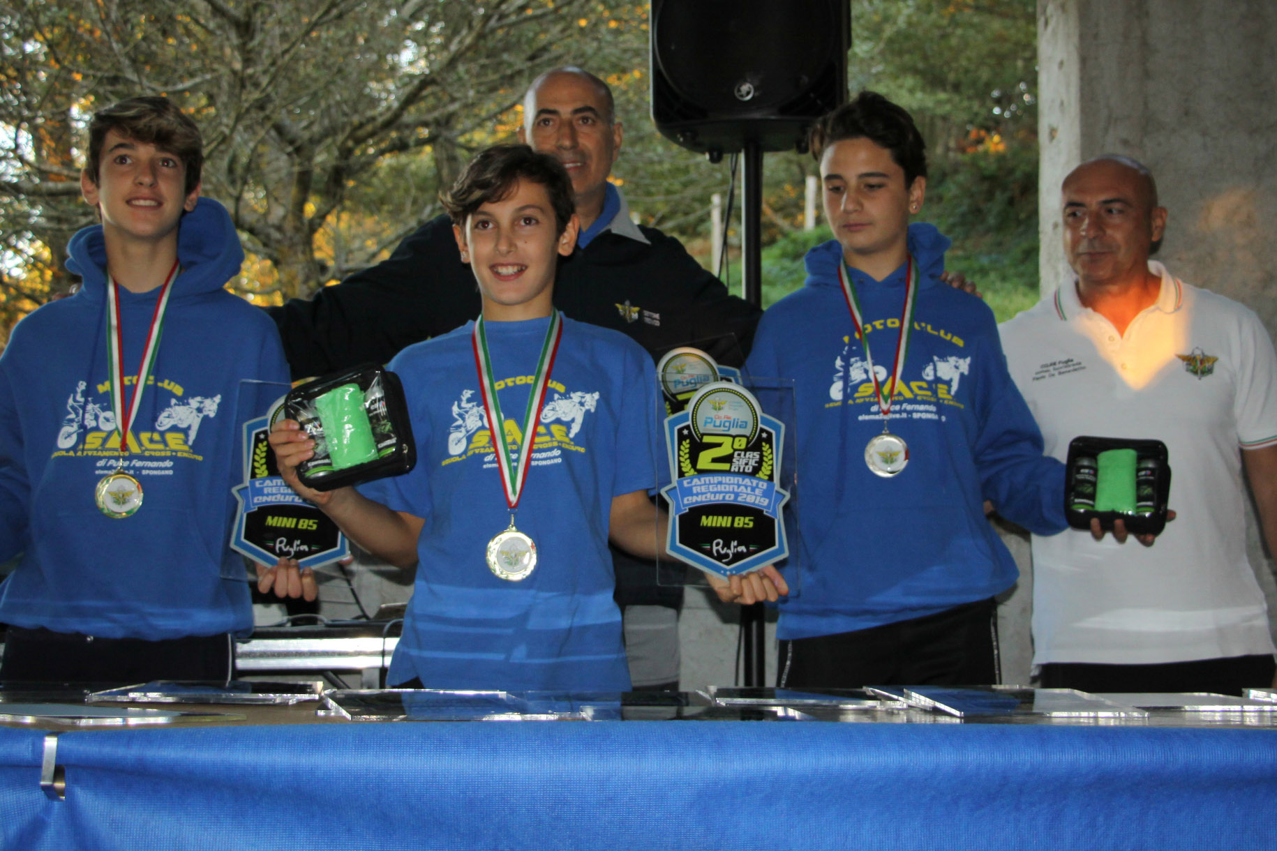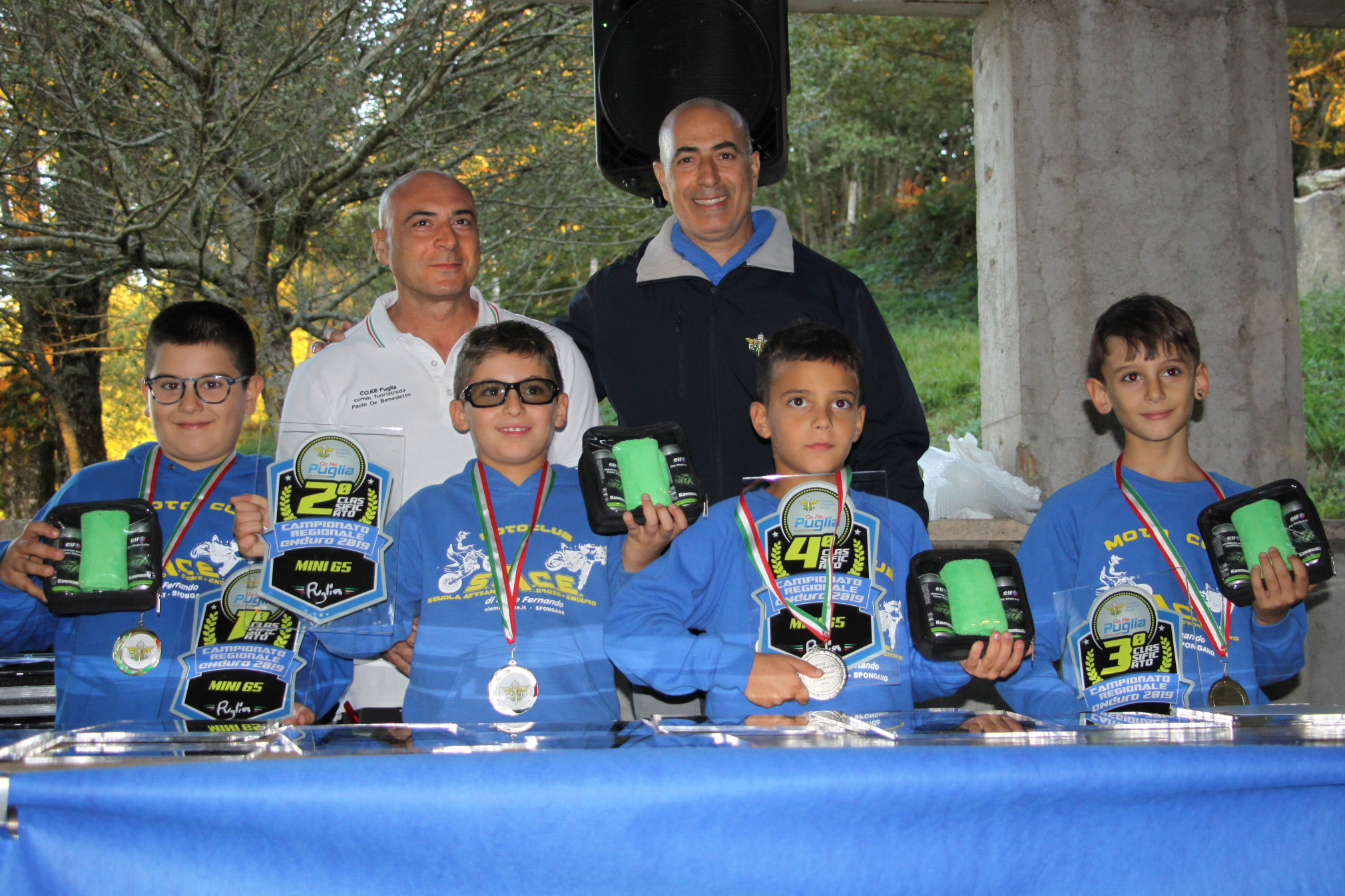 Le premiazioni della prima edizione del Trofeo Sud Italia sono state a cura della FMI che, oltre alle medaglie, ha fornito un kit “Bike care” offerto da ELF, libri dell’ISDE e cappellini. Un’esperienza che fa senz’altro crescere il valore sportivo piloti coinvolti, avvicinando sempre più gli appassionati di questo sport.