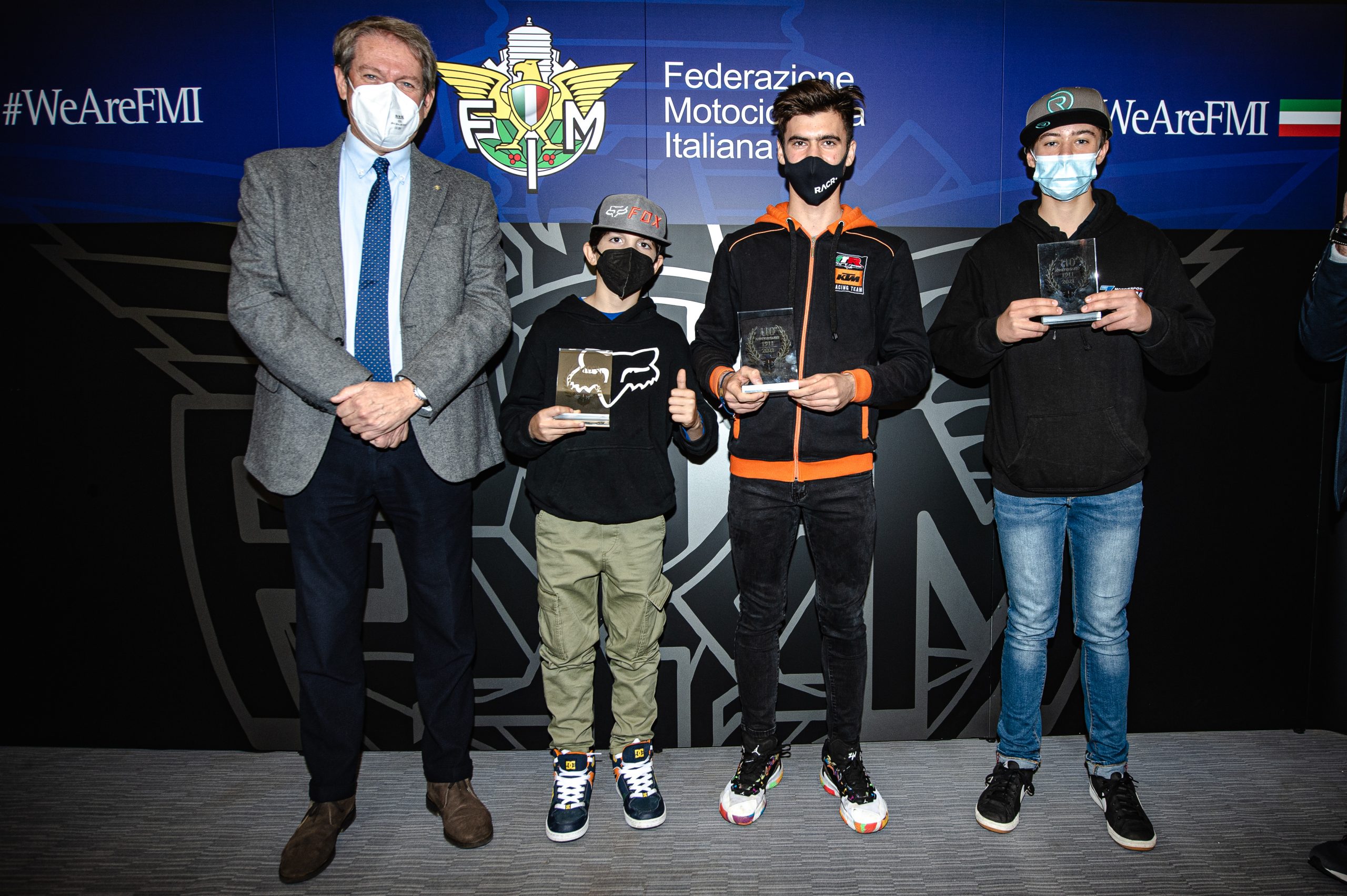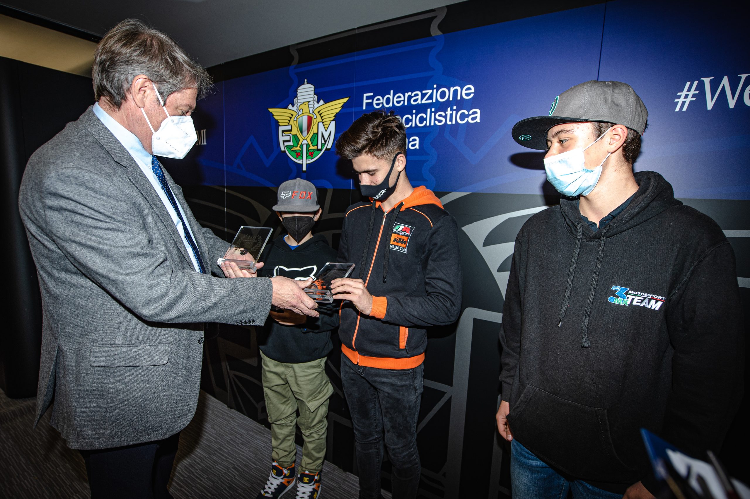 Prima occasione per celebrare i nostri piloti è stata la premiazione dei giovani azzurri vincitori del Mondiale Motocross Junior. Il Presidente FMI Giovanni Copioli ha riconosciuto i grandi meriti di Valerio Lata, Mattia Barbieri e Andrea Uccellini, capaci di conquistare il Mondiale Motocross Junior il 1° agosto a Megalopolis, in Grecia, confermando il titolo già ottenuto nel 2019 dalla Maglia Azzurra.