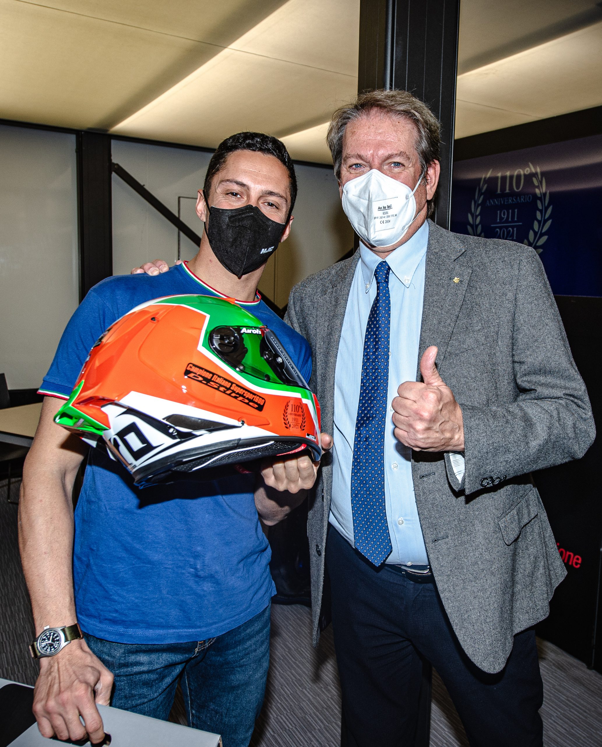 Il pomeriggio ha visto Enduro e CIV protagonisti. Il presidente Copioli ha prima premiato sul palco di MotoLive i piloti vincitori della ISDE e della ISDE Junior, i quali poi sono arrivati allo stand FMI per rilasciare dichiarazioni e, soprattutto, condividere bei momenti insieme agli appassionati. Ultimo evento della giornata, la premiazione dei campioni del CIV con dei caschi Airoh loro dedicati. Il Presidente Copioli ha consegnato ad ognuno una targa dei 110 anni FMI e si è complimentato con loro, così come con tutti i campioni arrivati allo stand, per la grande stagione sportiva.