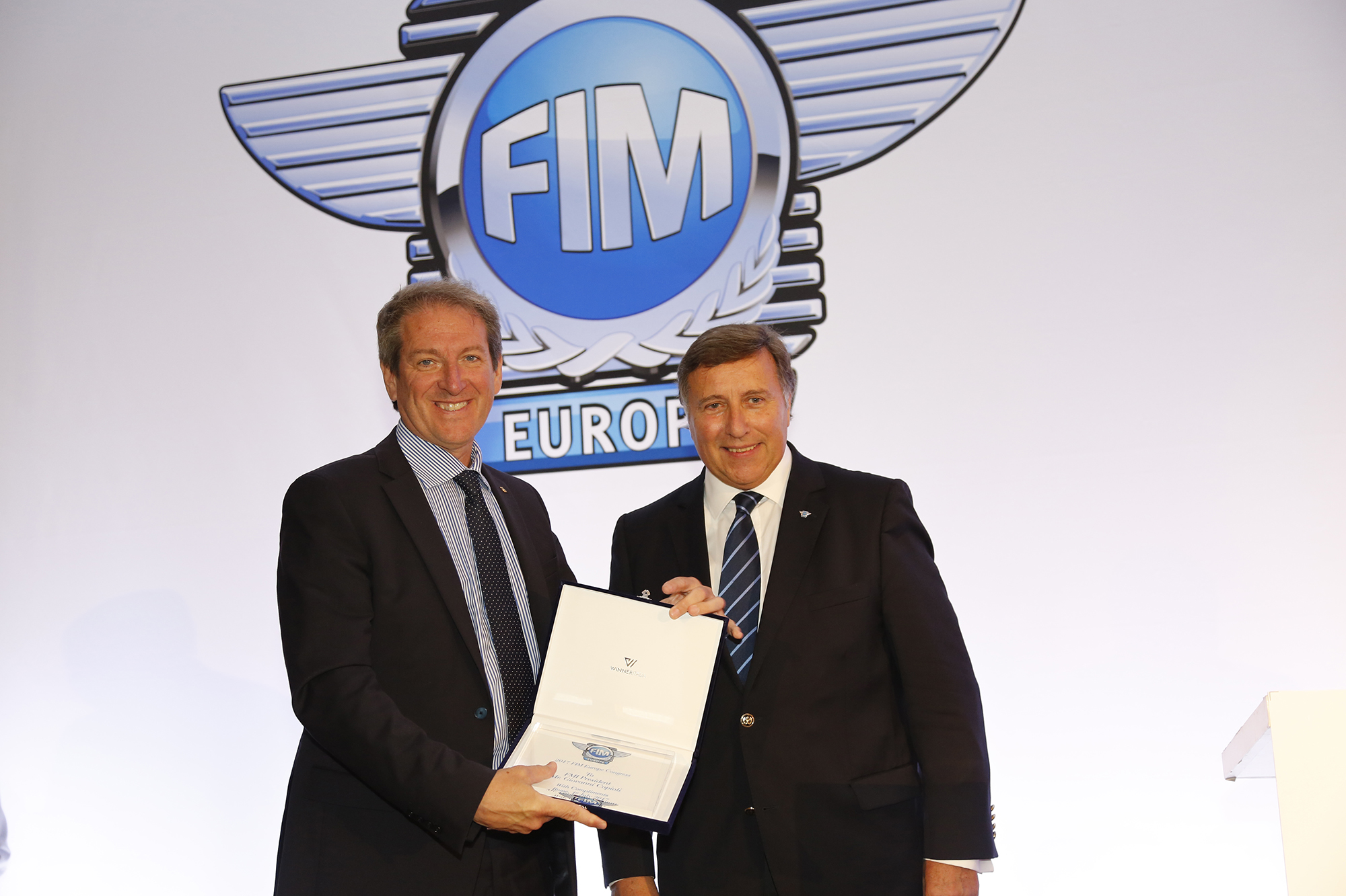 Nel corso della manifestazione, il Presidente della FIM Europe, Wolfgang Srb, ha consegnato a Copioli una targa celebrativa.
