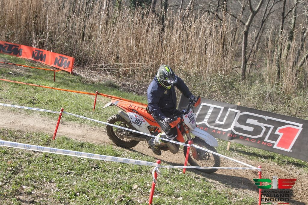 Ottimo lavoro quello svolto dagli uomini capitanati da Andrea Biagini meritevoli di aver presentato una gara molto bella con un giro a forma di otto, da 53 km, all’interno del quale erano presenti due speciali. Nel primo settore, dopo la partenza, gli enduristi hanno trovato il Cross Test disegnato all’interno di una cava dismessa con un terreno misto tra brecciolino riportato e sabbia mentre, la seconda speciale di giornata è stata l’Enduro Test, situata nel secondo anello del giro e caratterizzata dal classico sottobosco con presenza di radici.