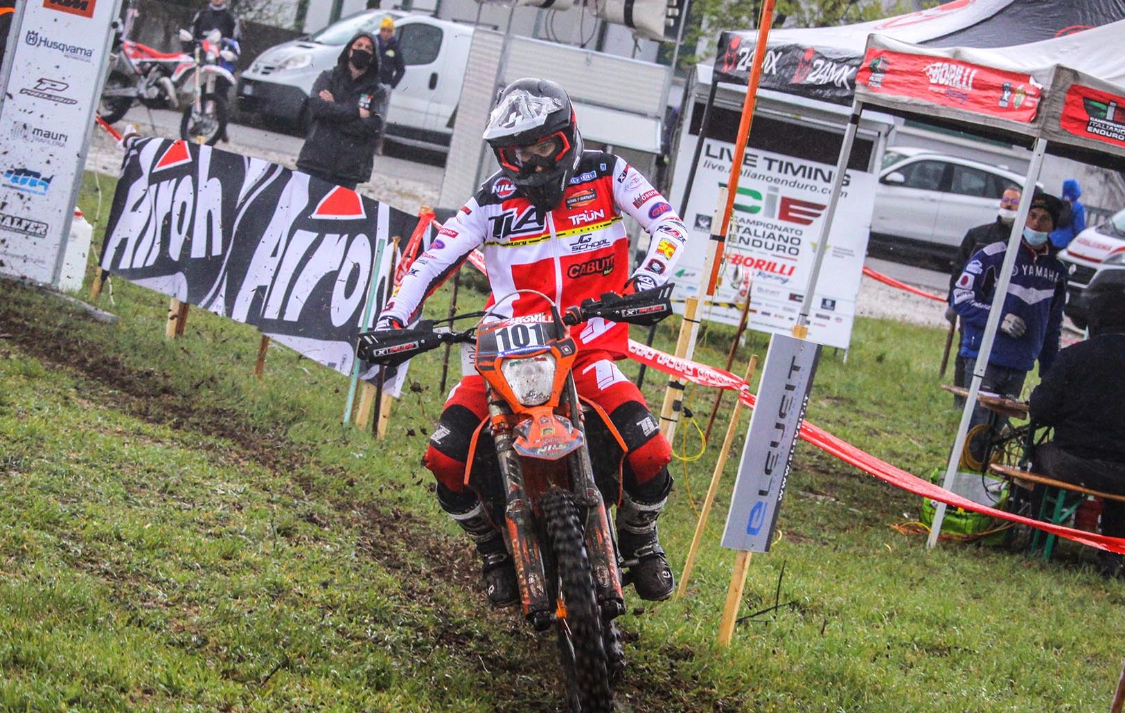 Un cielo plumbeo e una incessante pioggia battente hanno fatto da sfondo alla seconda vittoria assoluta stagionale del piemontese Jordi Gardiol. Il portacolori del Motoclub Vittorio Alfieri, in sella ad una KTM 250 4T, ha avuto la meglio, per 21 secondi, su Giuliano Mancuso (Fantic – D’Arpa Racing) in una delle gare più dure degli ultimi tempi al Campionato Italiano Enduro Under23/Senior.