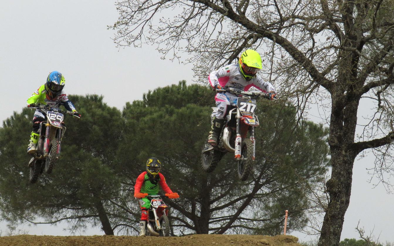Nel bilancio dei migliori risultati sarebbe potuta rientrare anche la cat. Junior che a San Saverino ha visto impegnati tre piloti del Moto Club di Montevarchi e cioè Samuele Chiantini (KTM), Tommaso Cape (KTM) e Lorenzo Aglietti (Husqvarna). Nella prima manche Chiantini ha chiuso infatti al 5° posto, Cape al 9° ed Aglietti al 22°. Purtroppo dopo poche battute di Gara 2 Chiantini, che era scattato in terza posizione, è stato toccato in un salto da un avversario e non ha potuto evitare la caduta; l’undicenne pilota di Rapolano Terme non ha potuto riprendere immediatamente il via e così ha proseguito la manche come se fosse un allenamento, chiudendo 24°. Cape si è invece classificato 11° mentre Aglietti ha terminato al 23° posto. Nell’assoluta di giornata 9° Chiantini, che ora è ottavo nella classifica di campionato, 11° Cape (9° nella generale dopo due prove) e 24° Aglietti (20° in campionato).