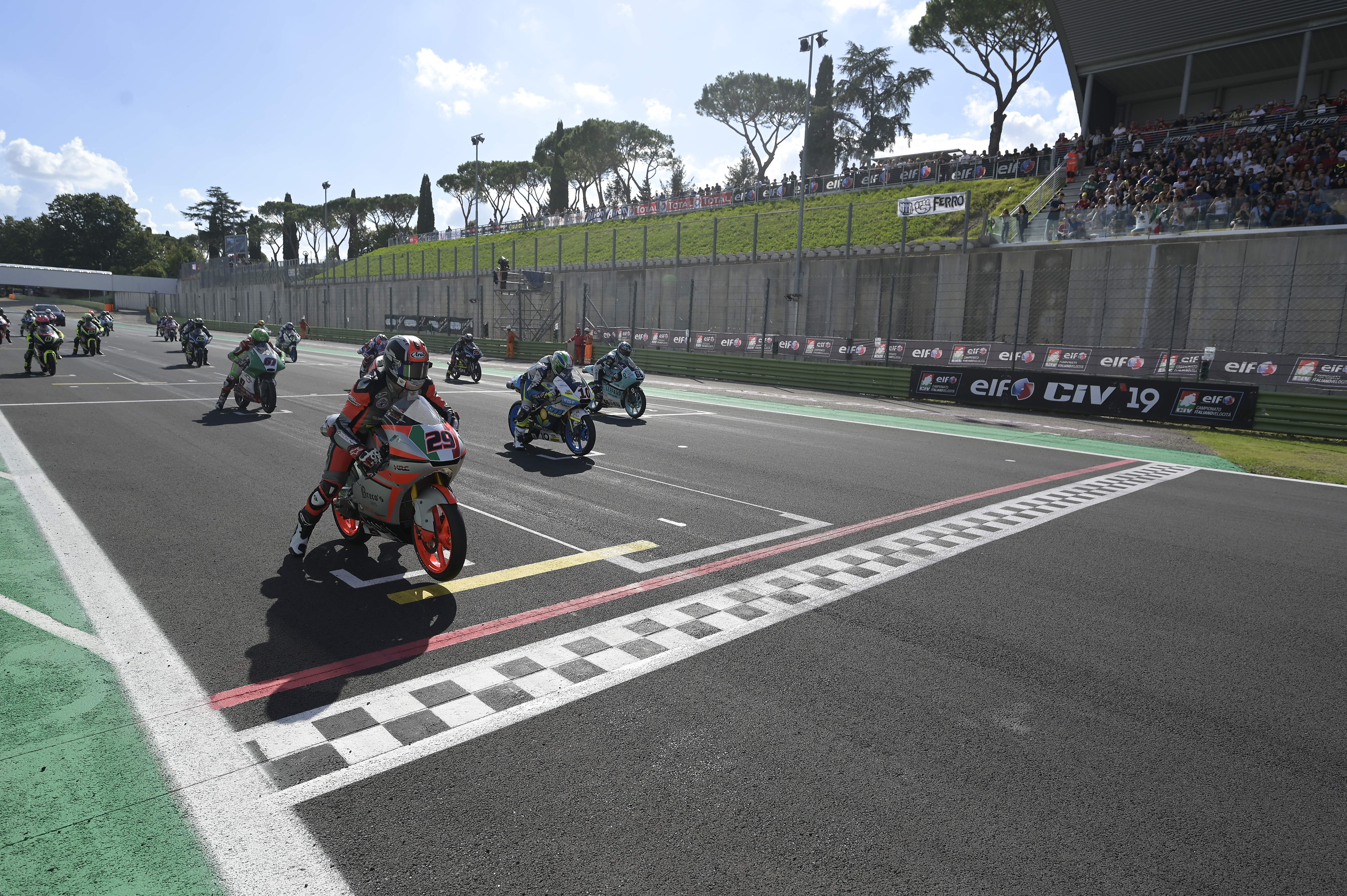 Gli ultimi due titoli 2019 assegnati. E le conferme di alcuni campioni. Sotto gli occhi di un grande pubblico. Il Round 3570 di Vallelunga si è chiuso con il sigillo del Campione in Moto3, dove Nicholas Spinelli ha concluso come meglio non poteva il suo 2019 all’ELF CIV. Dopo il titolo conquistato ieri, l’alfiere Honda Oscar Performance è andato a trionfare oggi nell’ultima gara dell’anno. Dimostrando ancora come il miglior pilota in Moto3 sia lui. La seconda posizione è andata al pilota RGR TM Racing Factory Team, Nicola Carraro, con il podio chiuso dal giovane alfiere Honda del Junior Team Total Gresini, Alessandro Morosi. La classifica di Campionato finale vede quindi Spinelli a 210 p. davanti ad Alberto Surra (7° in gara) a 164 p. con Zannoni (assente perché impegnato al Mondiale Moto3 in sostituzione di Antonelli con il Team di Simoncelli) a 121 p. Tra i costruttori: Honda con 241 p., davanti a TM 205 p. e KTM 174 p.