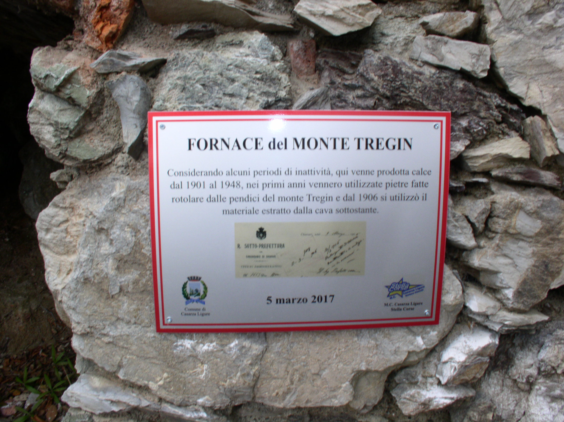 Quest’anno invece si sono dedicati alla riscoperta di un’antica fornace per la preparazione della calce, funzionante dai primi anni del 1.900 fino all’immediato dopoguerra. Un elemento essenziale per consentire alla popolazione di quelle valli la possibilità di realizzare il legante necessario per costruire le loro case. Ogni reperto ritrovato è stato dotato dal Motoclub di una targa in metallo con la serigrafia dei documenti attestanti la loro datazione storica e l’uso per cui sono nati. Storia, ricordo e divertimento si sono poi ritrovati ai due punti di ristoro con i prodotti tipici della zona, salame di cinghiale (quello della mulatrial …) formaggi e focaccia seguita da dolce e vino bianco e rosso. L’organizzazione ha predisposto un altro punto di sosta alla Fornace con la proposta di un bicchiere di vin brulè per reintegrare le energie nella seconda parte del giro.