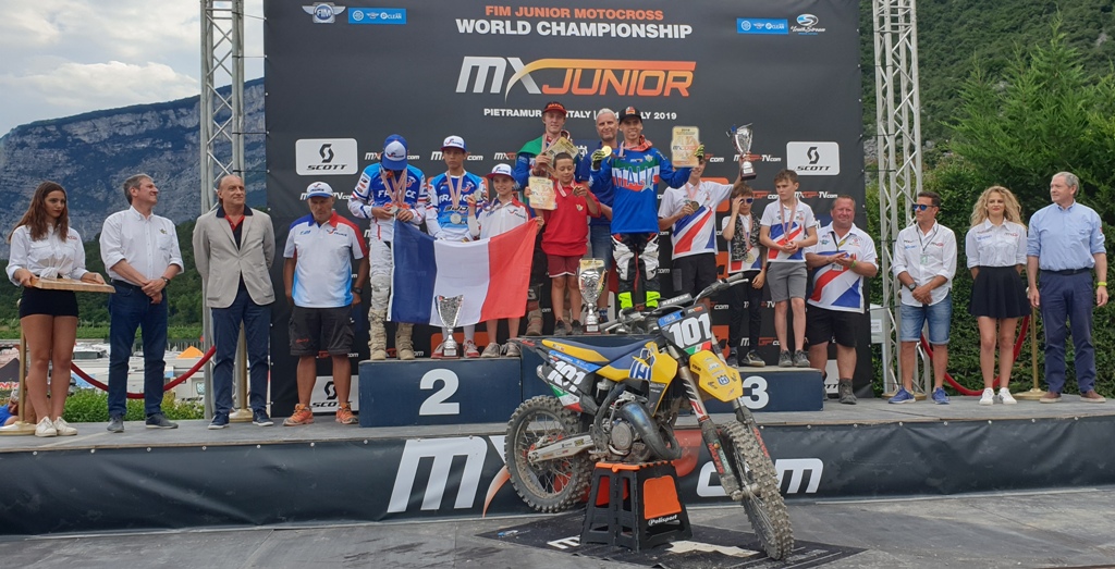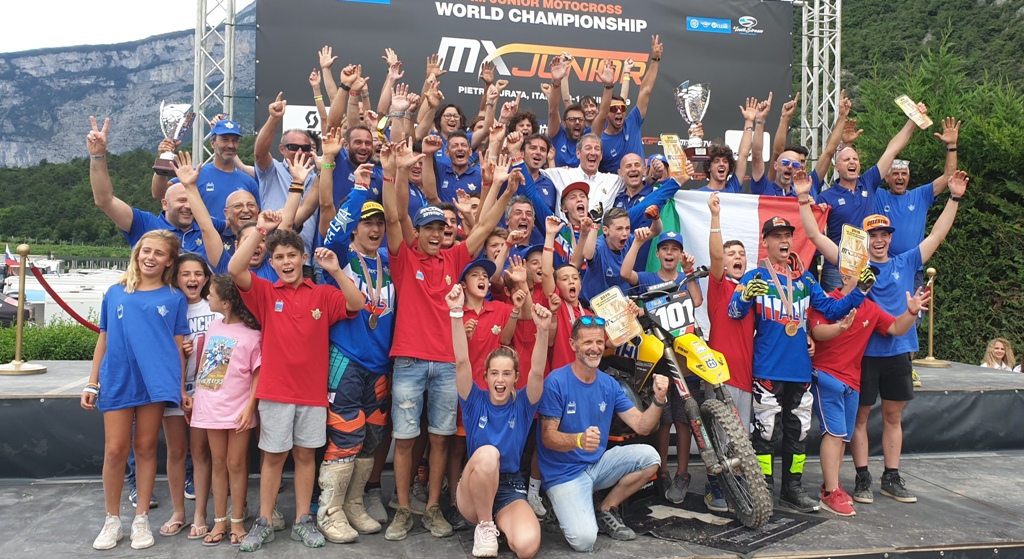 Italia assoluta protagonista del Mondiale Motocross Junior! Andato in scena oggi a Pietramurata, l’evento riservato ai giovani Under 17 ha visto gli atleti azzurri tra i migliori interpreti della disciplina. Grazie alle loro prestazioni, l’Italia si è laureata Campione del Mondo Motocross Junior a squadre venendo premiata sul podio dal Presidente FMI Giovanni Copioli. A dare ulteriore prestigio a questo risultato, i grandi obiettivi raggiunti da Mattia Guadagnini e Valerio Lata, neo iridati rispettivamente nella 125 cc e nella 85 cc.