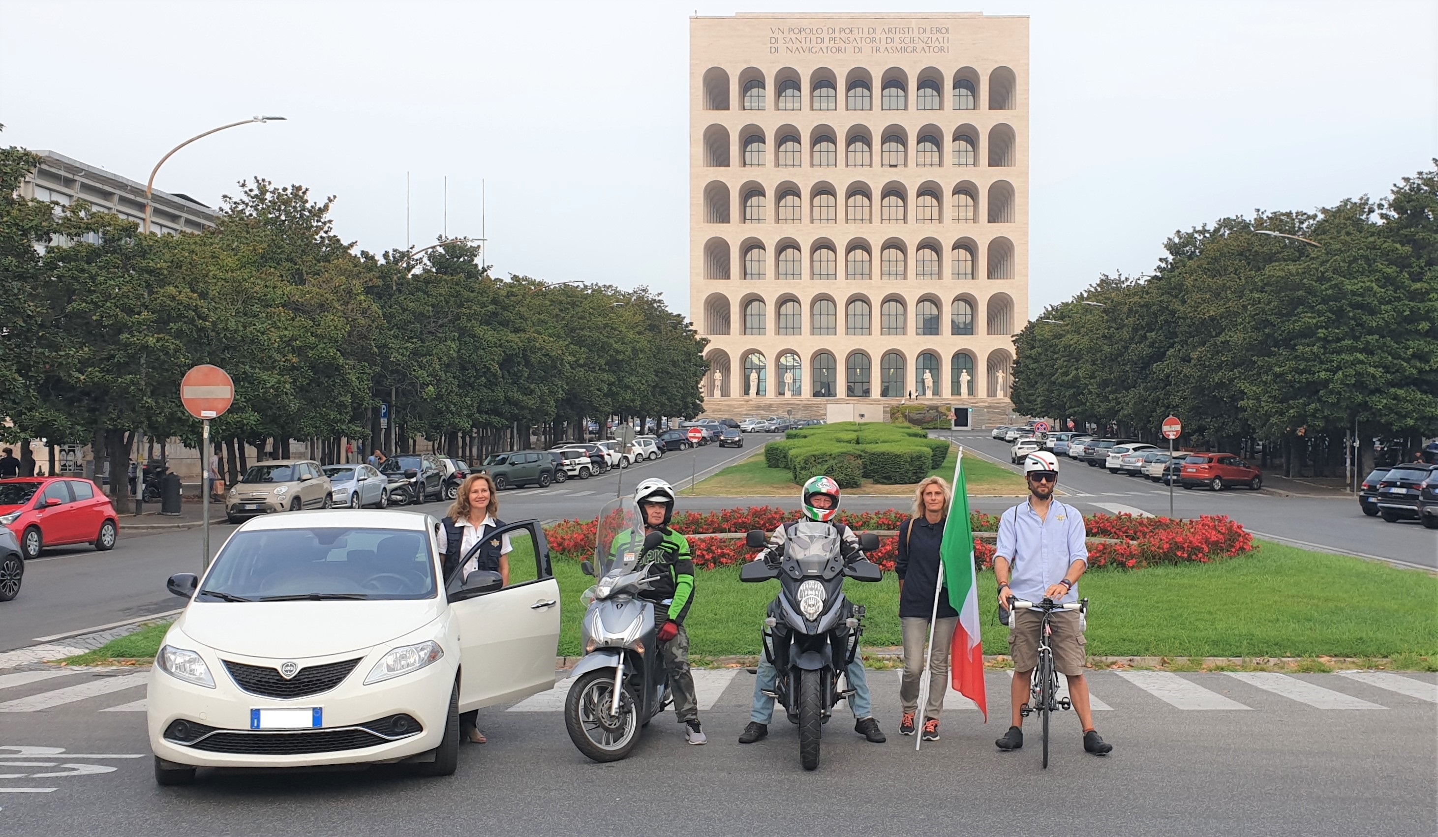 Alle 8.30 della mattina sono partiti da Piazzale Konrad Adenauer, nel quartiere EUR, un motociclista, un utente di ciclomotore, un ciclista, un automobilista e un pedone. Ognuno di loro ha dovuto raggiungere, rispettando il Codice della Strada, la sede della Federazione Motociclistica Italiana in Viale Tiziano 70; è stato percorso un tragitto di 15 chilometri di lunghezza media.