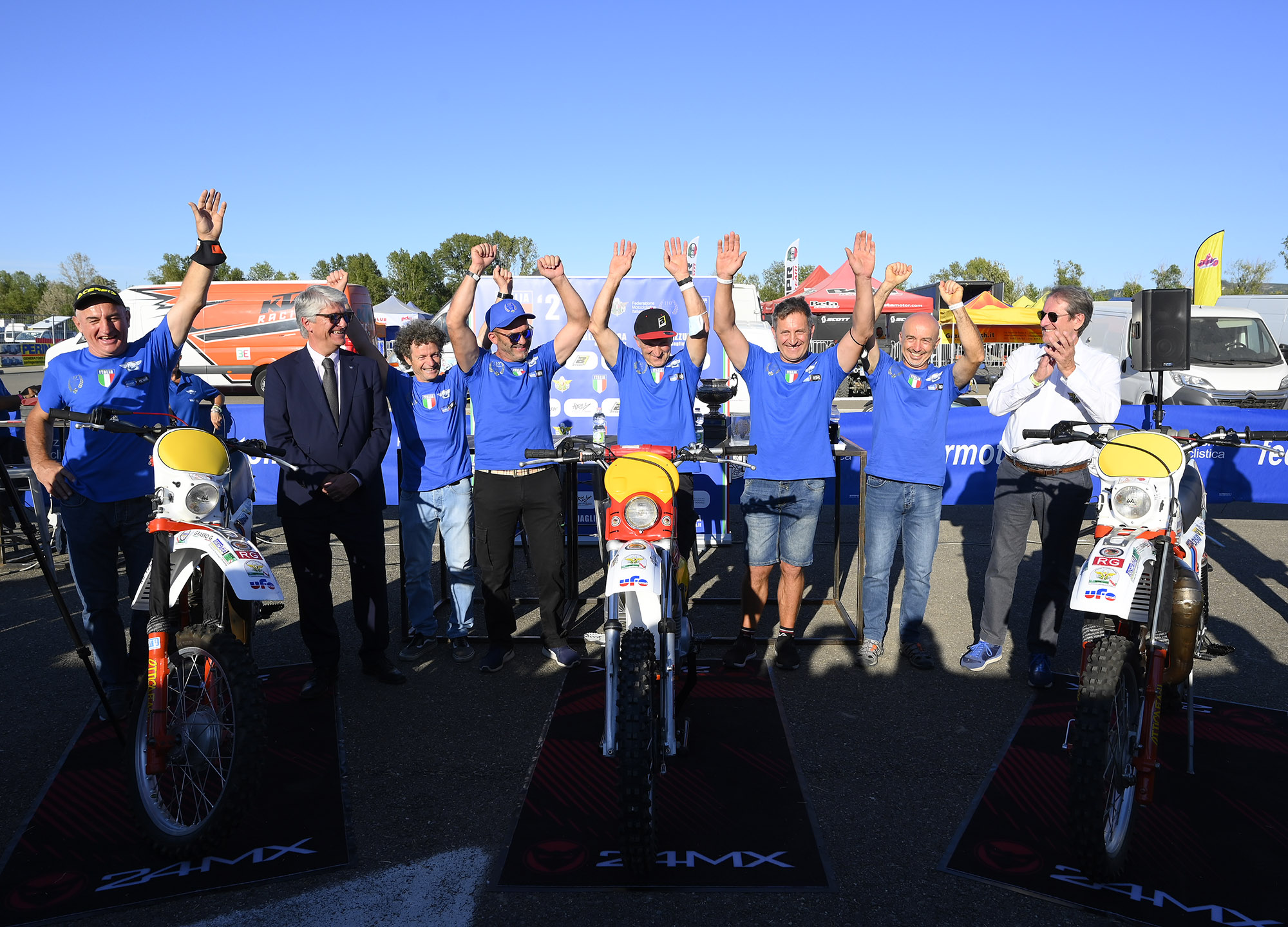 Dopo le parole di Copioli, del Presidente FIM Jorge Viegas e del Presidente del Consiglio Regionale Lombardia, Alessandro Fermi, è stata consegnata a Stefano Passeri, Mario Rinaldi e Giò Sala la coppa del Trofeo Vintage Veterans conquistato dai tre assi nel 2019 in Portogallo. Successivamente, è stata presentata la squadra italiana per il FIM Enduro Vintage Trophy. I piloti selezionati dal Team Manager, Francesco Mazzoleni, sono: