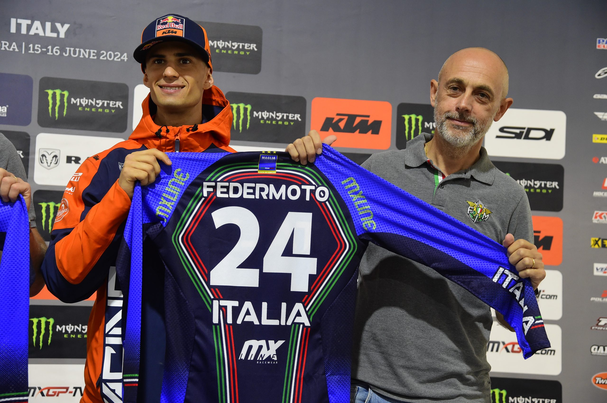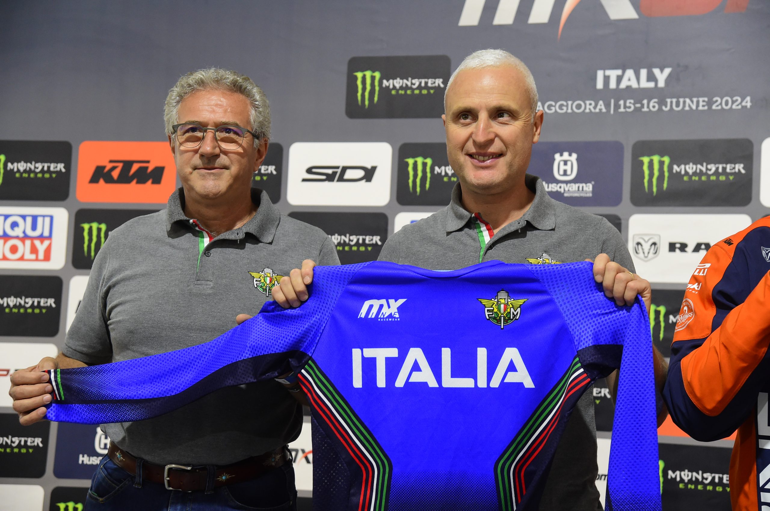 Il Consigliere Federale Armando Sponga, il Coordinatore del Comitato Motocross FMI, Roberto Rustichelli, il Commissario Tecnico FMI Thomas Traversini e il Campione del Mondo MX2 2023 Andrea Adamo hanno mostrato la Maglia Azzurra nell’incontro con i media. Nel pomeriggio il pubblico ha ammirato la divisa svelata da Roberto Rustichelli, Thomas Traversini e i piloti Andrea Adamo, Mattia Guadagnini, Valerio Lata e Ferruccio Zanchi, tutti atleti che hanno già vestito la Maglia Azzurra della nazionale maggiore o giovanile.
