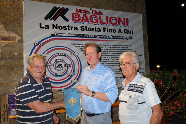 Il Presidente FMI, Giovanni Copioli, ha dichiarato: “Ringrazio il Presidente Polidori, il vice Presidente Bassini e tutti i soci del Moto Club Baglioni per questo omaggio che non è solo un prezioso manufatto ma è ricco della storia e della passione che si respirano a Città di Castello. Ringrazio anche il club per il grande lavoro svolto in particolare relativamente alla pista di Motocross, punto di riferimento per le attività di base del Centro Italia”. Alla cena sociale erano presenti anche il Presidente del CONI regionale, Domenico Ignozza, il Direttore Tecnico Motocross FMI, Thomas Traversini, e tutti i soci del Moto Club Baglioni.