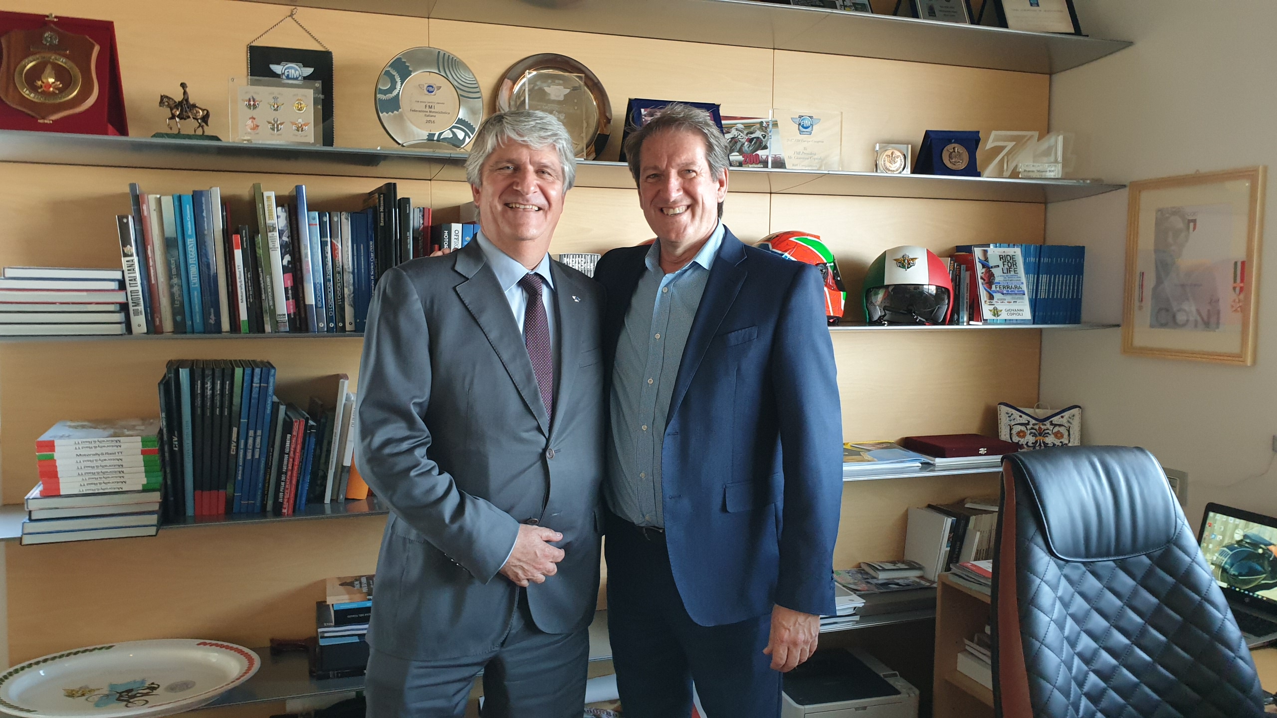 Nella giornata di ieri Jorge Viegas, Presidente della FIM, è stato protagonista di una visita informale alla Federazione Motociclistica Italiana e al Presidente FMI, nonché membro del Board of Directors FIM, Giovanni Copioli. L’incontro, cordiale e costruttivo, è stata l’occasione anche per confrontarsi sui molti temi che vedono lavorare insieme i due Presidenti.