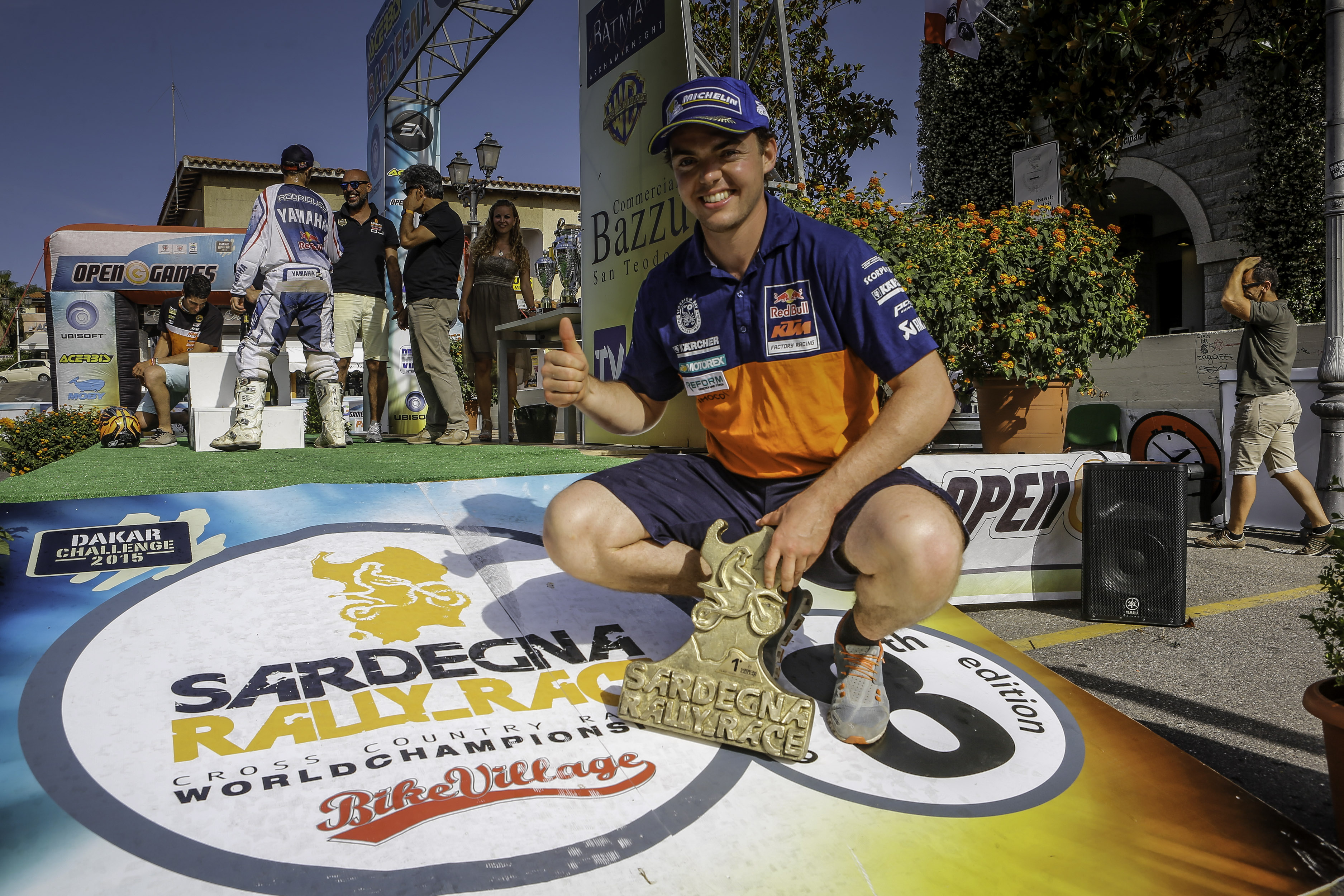 In mezzo a tanti giovani, la sorpresa dell’ultimo giorno di gara in Sardegna è stato il podio conquistato da Helder Rodrigues. Il portoghese, un “senatore” già Campione del Mondo 2011, partecipava per la prima volta ad una prova di Mondiale dal “ritorno” nella Squadra ufficiale Yamaha, ed aveva sofferto i primi giorni di gara a causa di un attacco influenzale. Ripresosi in fretta, Rodrigues ha dapprima mantenuto un basso profilo, ma poi è partito all’attacco dell’ultima tappa ed è riuscito a salire sul podio. Meno fortunati i suoi colleghi più esperti. Paulo Gonçalves è scivolato al quarto posto a causa di un paio di situazioni “critiche”. Marc Coma, che invece aveva deciso di controllare la gara e caccia di punti per il Mondiale che lo vede in testa, ha commesso un piccolo errore durante la terza tappa, ed è caduto il penultimo giorno. Il quinto posto del “Re” arriva al termine di una gara non pienamente soddisfacente e conclusa con un polso dolorante, ma vederlo correre in Sardegna, come ovunque, è uno spettacolo ineguagliabile. Il più contento dei “miti” del Motorsport è certamente Carlos Checa, il Campione del Mondo della Superbike che debuttava nei Rally-Raid.